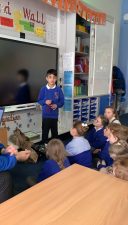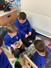 In Foundation 2 the children use litter pickers to collect rubbish which has been left in their outdoor area. They find out about how to care for their environment and think about people in the community who help to keep everywhere tidy. They enjoy a visit to St. Catherine’s church where they listen to the story of creation from the Bible. They are fascinated by the church building and what they see inside.