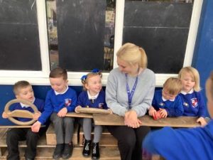 In Foundation 2 the children are actively encouraged to act out stories they have been told so they can practise using storytelling language and vocabulary. They use carpet time and outdoor areas to hold regular discussions about work and practise their speaking and listening skills together.